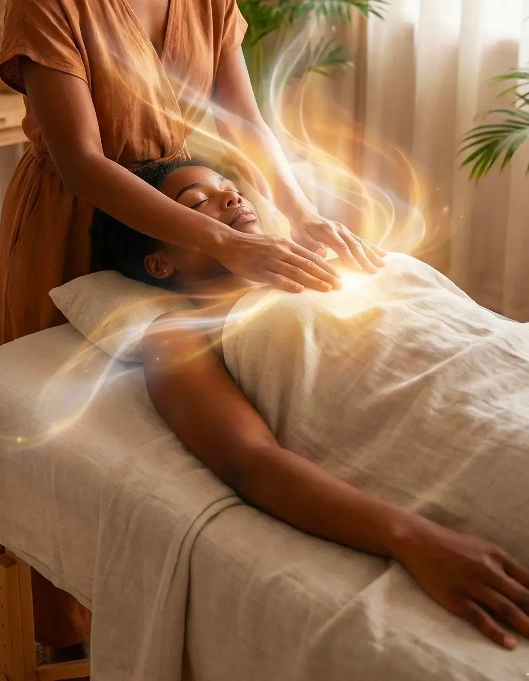 Le Reiki est une méthode d’origine japonaise par apposition des mains qui permet de canaliser l’énergie universelle pour relancer vos propres capacités de guérison. C’est le soin idéal si vous vous sentez « vide », stressé ou en décalage avec vous-même.
